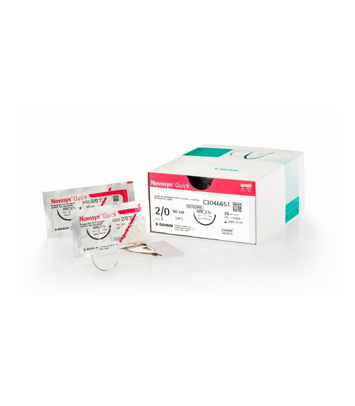 Novosyn Quick - fir de sutura resorbabil, transparent, absorbtie termen scurt, multifilament acoperit, poliglactin 910, 4/0 USP (1,5 EP), L=70 cm, ac triunghiular, standard, curbura 3/8, 12 mm