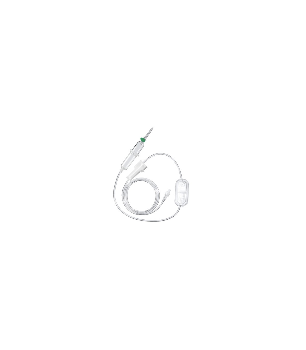 - dispozitiv de aerisire manual cu filtru antibacterian de 0,2 μm și căpăcel de protecție; - cameră de picurare cu două corpuri (cel superior transparent rigid cu formator de picături performant - 20 picături ≅ 1 ml; cel inferior flexibil) și cu filtru hidrofil pentru întreruperea automată a perfuziei după golirea flaconului;