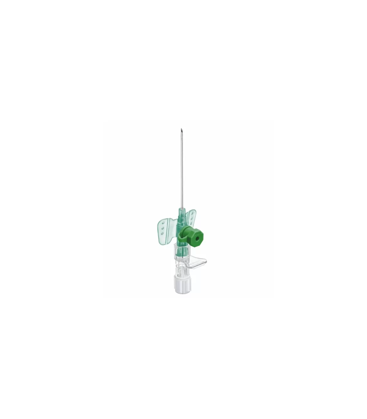 Ac din oţel inoxidabil (crom-nichel), aripioare codul culorilor, tub prelungitor 30 cm cu conexiune „luer lock”;