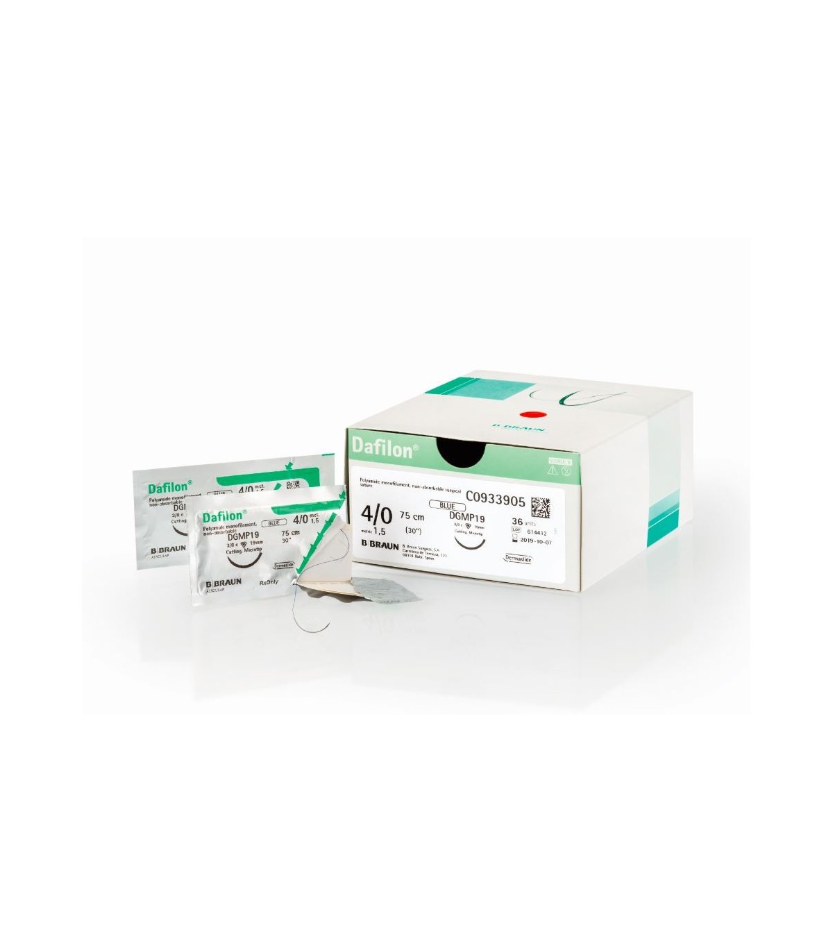Dafilon - fir de sutura neresorbabil, albastru, monofilament, poliamida, 5/0 USP (1 EP), L=75 cm, ac triunghiular, standard, curbura 3/8, 19 mm