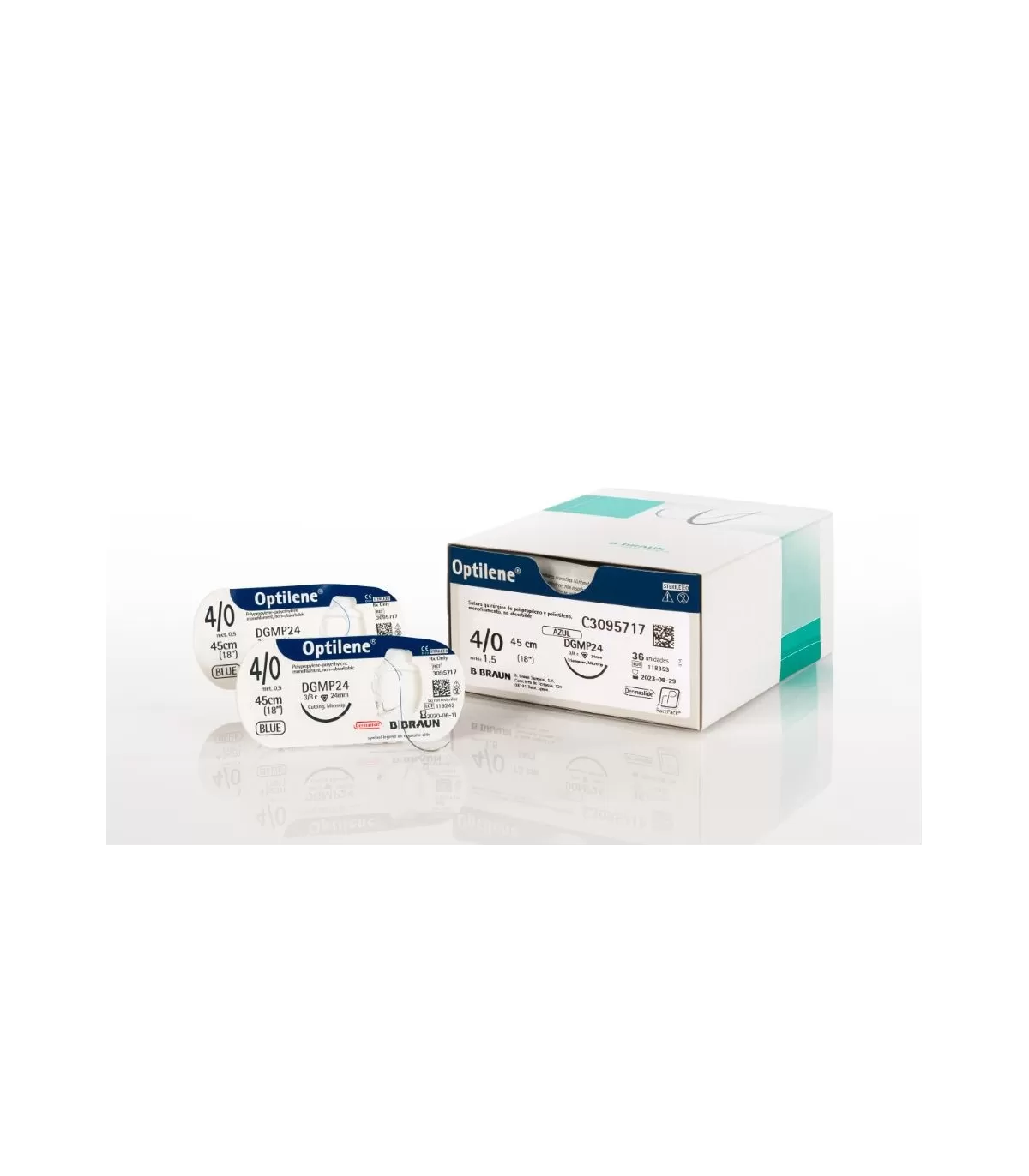 Optilene - fir de sutura neresorbabil, albastru, monofilament, polipropilena cu polietilena, 3/0 USP (2 EP), L=75 cm, ac triunghiular, standard, curbura 3/8, 16 mm