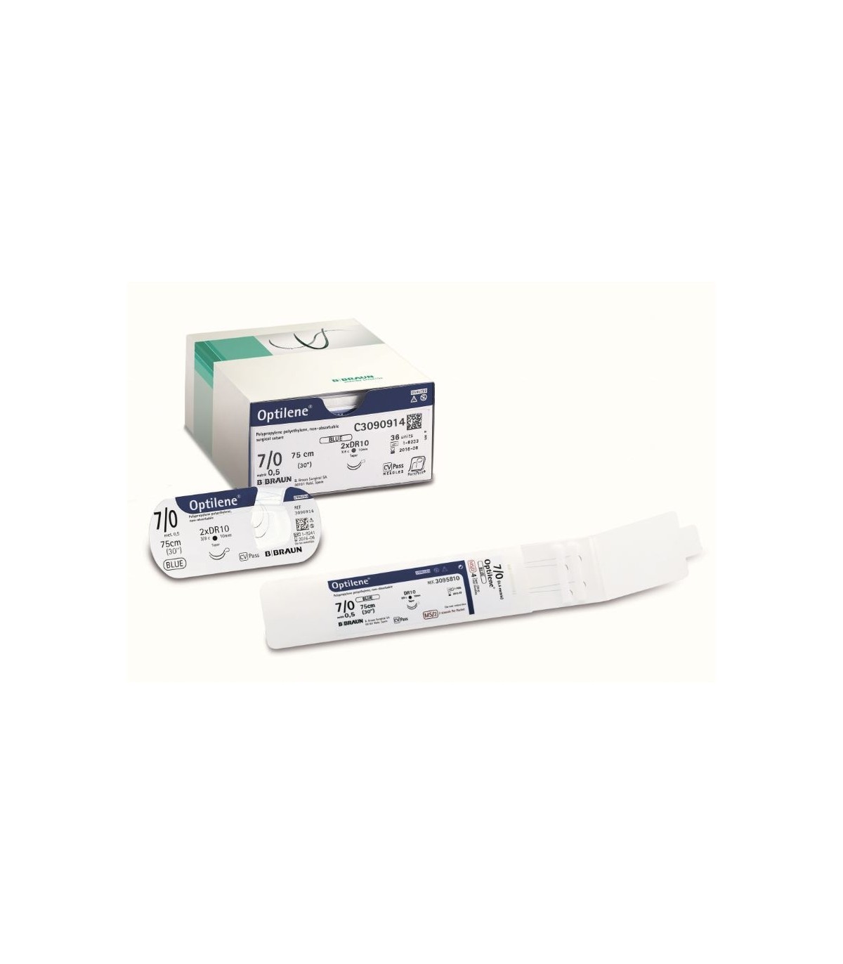 OPTILENE - FIR DE SUTURA NERESORBABIL, ALBASTRU, MONOFILAMENT, POLIPROPILENA CU POLIETILENA, 8/0 USP (0,4 EP), L=75 CM, DUBLU ARMAT, ACE ROTUNDE CU MICRO VARF TAIETOR, STANDARD, CURBURA 3/8, 6 MM, 36 FIRE/CUTIE
