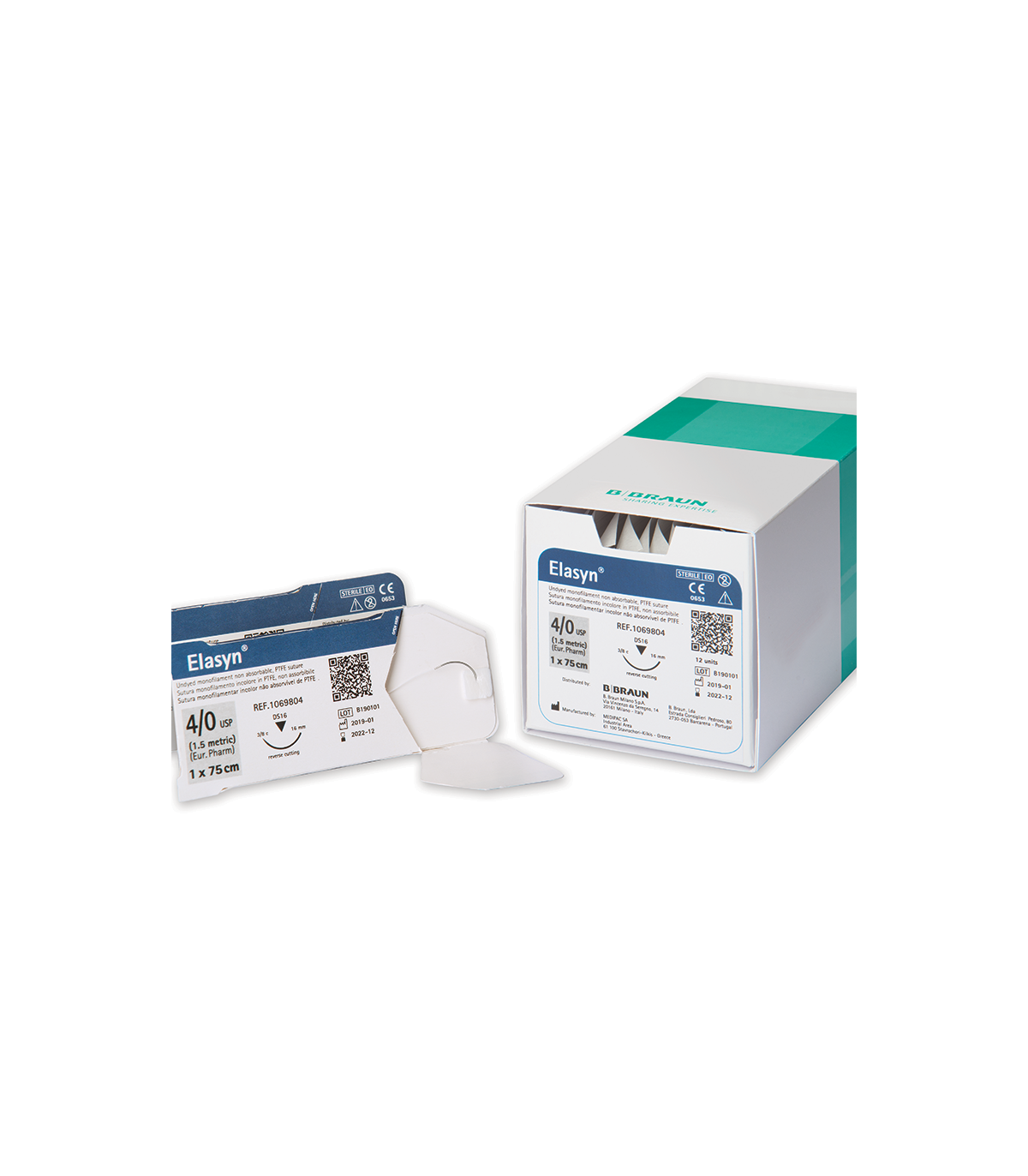Elasyn - fir de sutura neresorbabil, alb, monofilament, PTFE (Politetrafluoretilena), 3/0 USP (2 EP), L=75 cm, ac triunghiular, standard, curbura 3/8, 19 mm