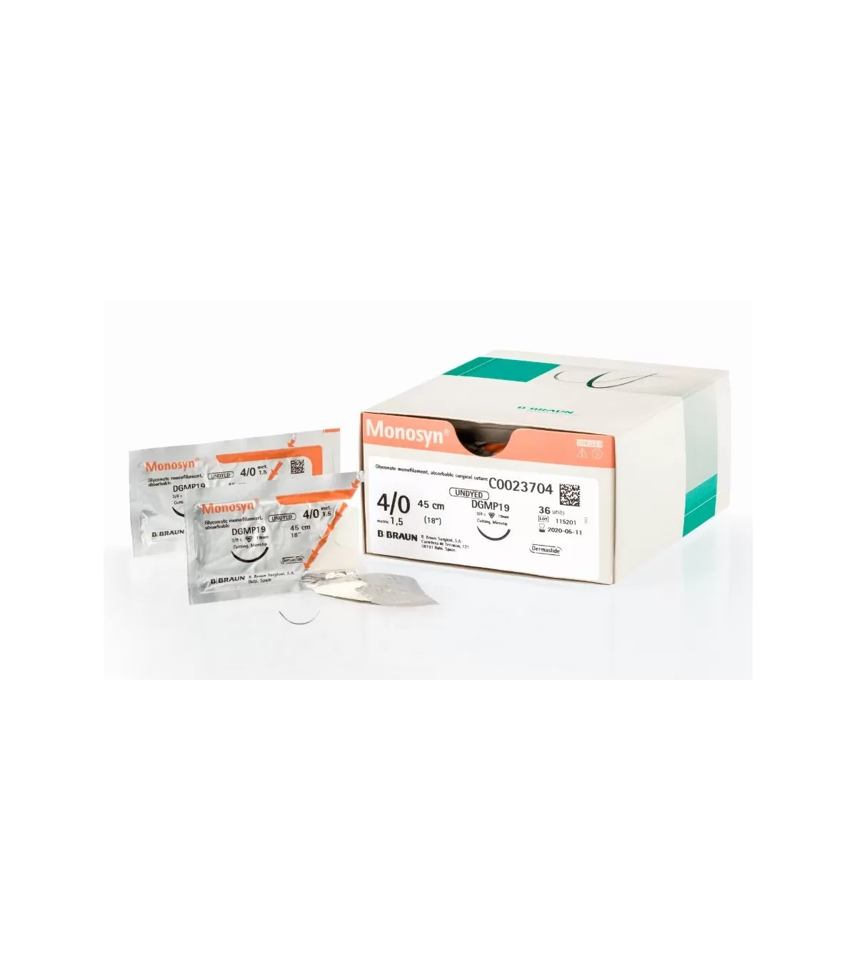 Monosyn fir de sutura resorbabil,violet, absorbtie termen mediu, monofilament, gliconat, 3/0 USP (2 EP), L=70 cm, ac triunghiular, standard, curbura 1/2, 26 mm