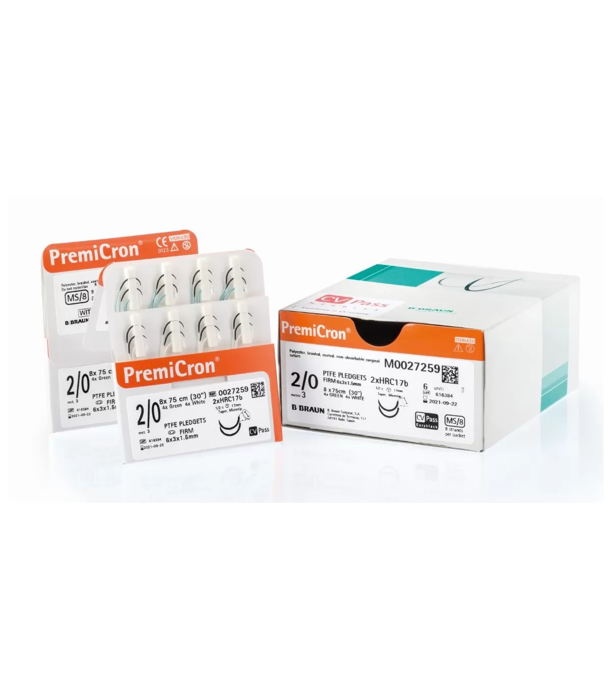 Premicron Green fir de sutura neresorbabil, verde, multifilament acoperit, poliester, 2/0 USP (3 EP), L=75 cm, ac triunghiular standard, curbura 3/8, 24 mm.