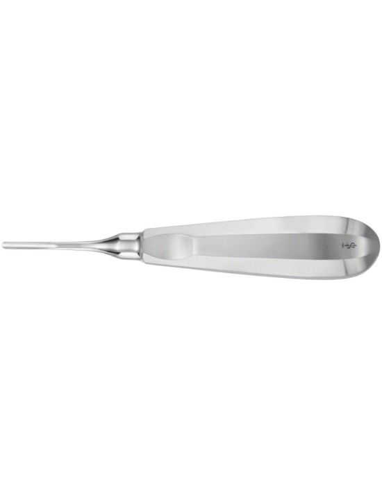 Elevator reziduuri radacini, drept, varf parte activa foarte subtire, asemanator cu o guja, maner cu depresiune potrivita pentru police, acces facil la radacini chiar si in suprafete dificile, sensibilitate crescuta in timpul operatiei, varf 3.0 mm