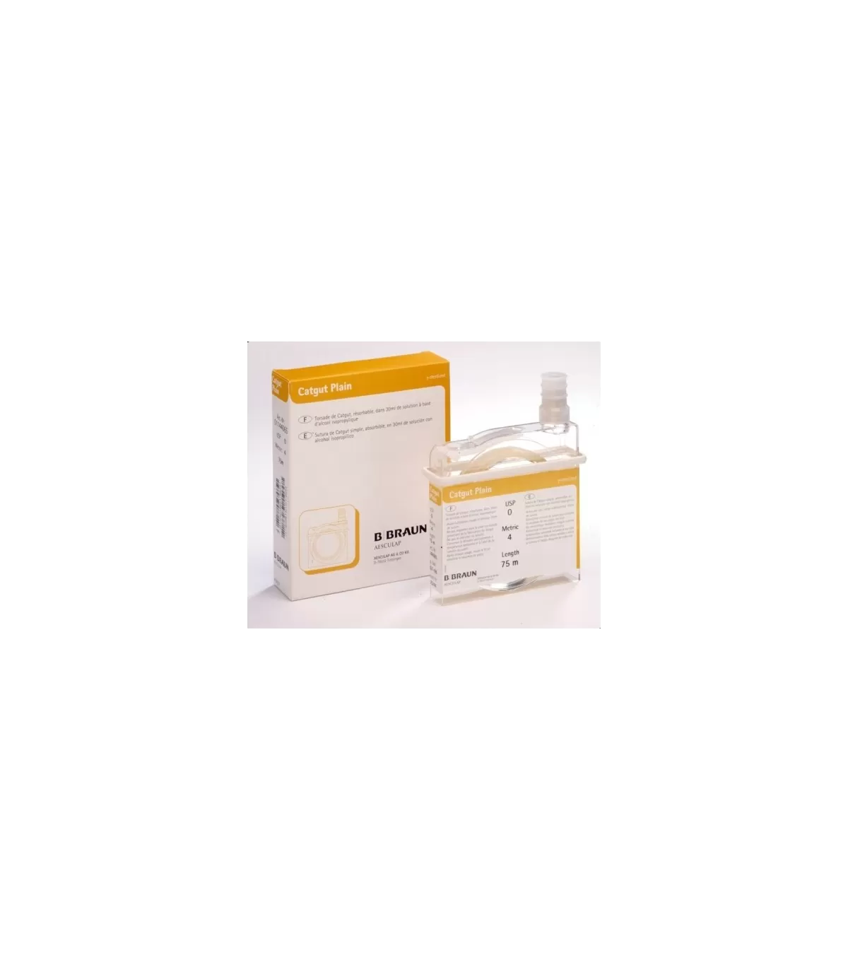 Catgut Plain - fir de sutura resorbabil, exclusiv pentru uz veterinar, bej, absorbtie termen scurt, poli-monofilament rasucit, colagen, 2 USP (6 EP), L=75 metri, fara ac