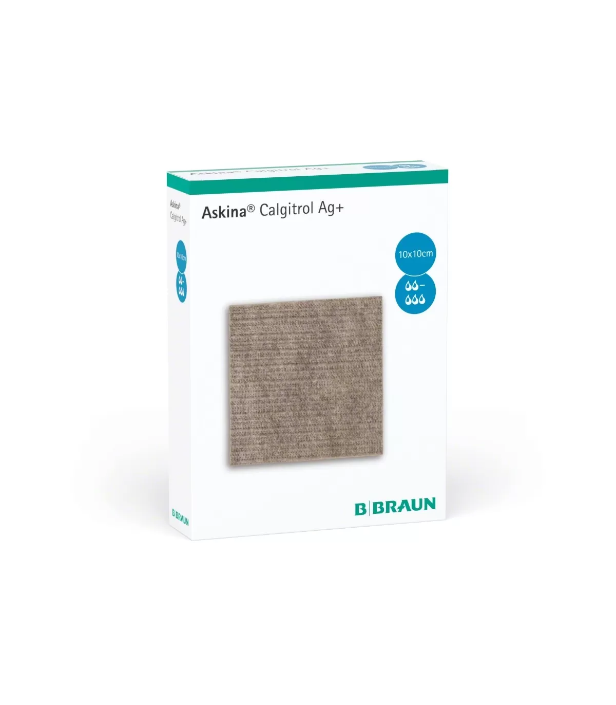 Askina® Calgitrol® Ag+ este un pansament cu nanoparticule de argint ionic, incapsulate in fibre de celuloza fortificate si carboximetilceluloza de sodiu. Se utilizeaza pentru gestionarea infecțiilor și a exsudatului abundent din plăgi.